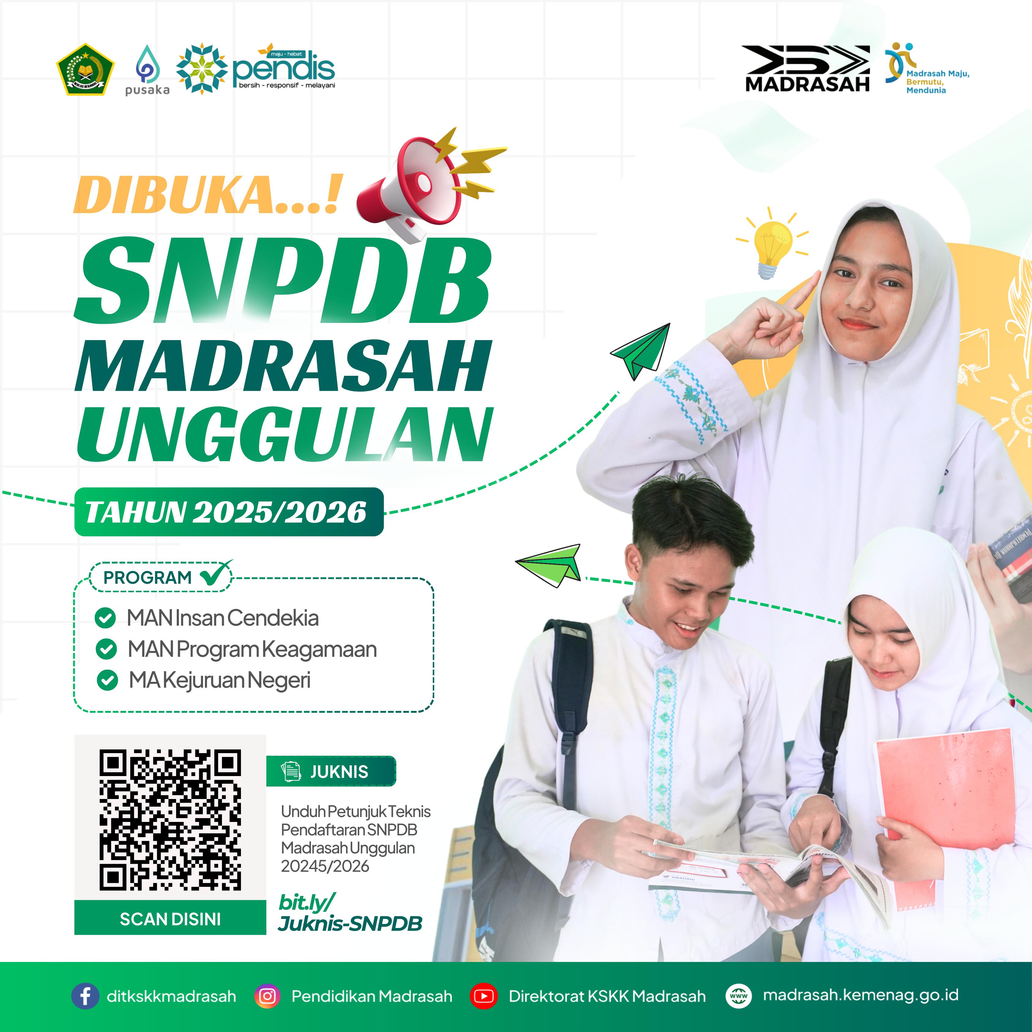 SNPDB Kota Pelaihari MAN membuka kesempatan bagi putra-putri terbaik bangsa untuk menjadi bagian dari madrasah unggulan yang memadukan ilmu, iman, dan amal. Daftar sekarang dan wujudkan cita-citamu bersama kami!